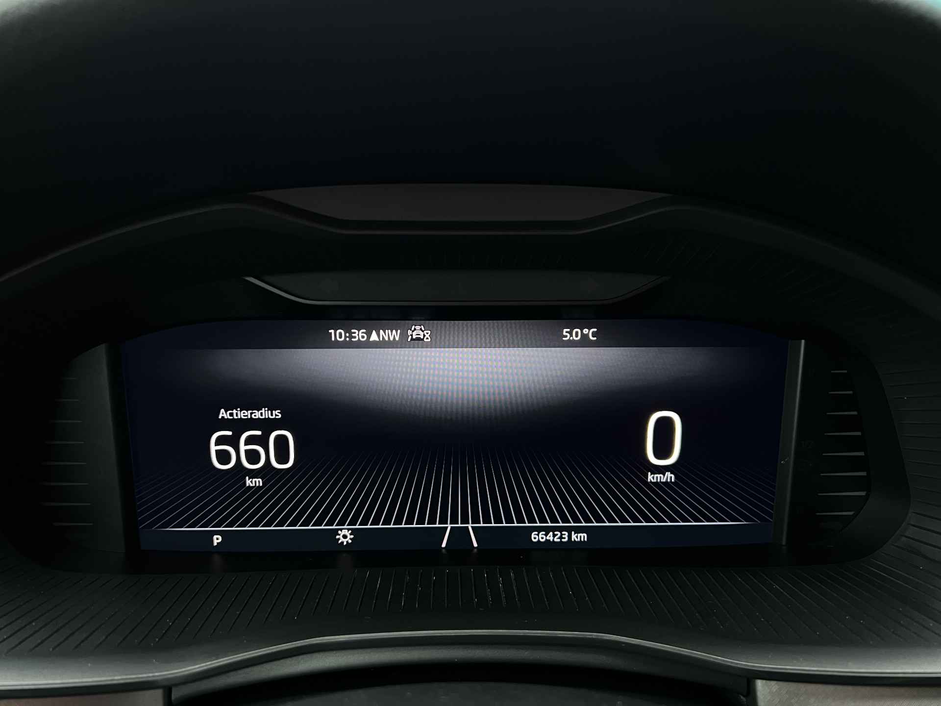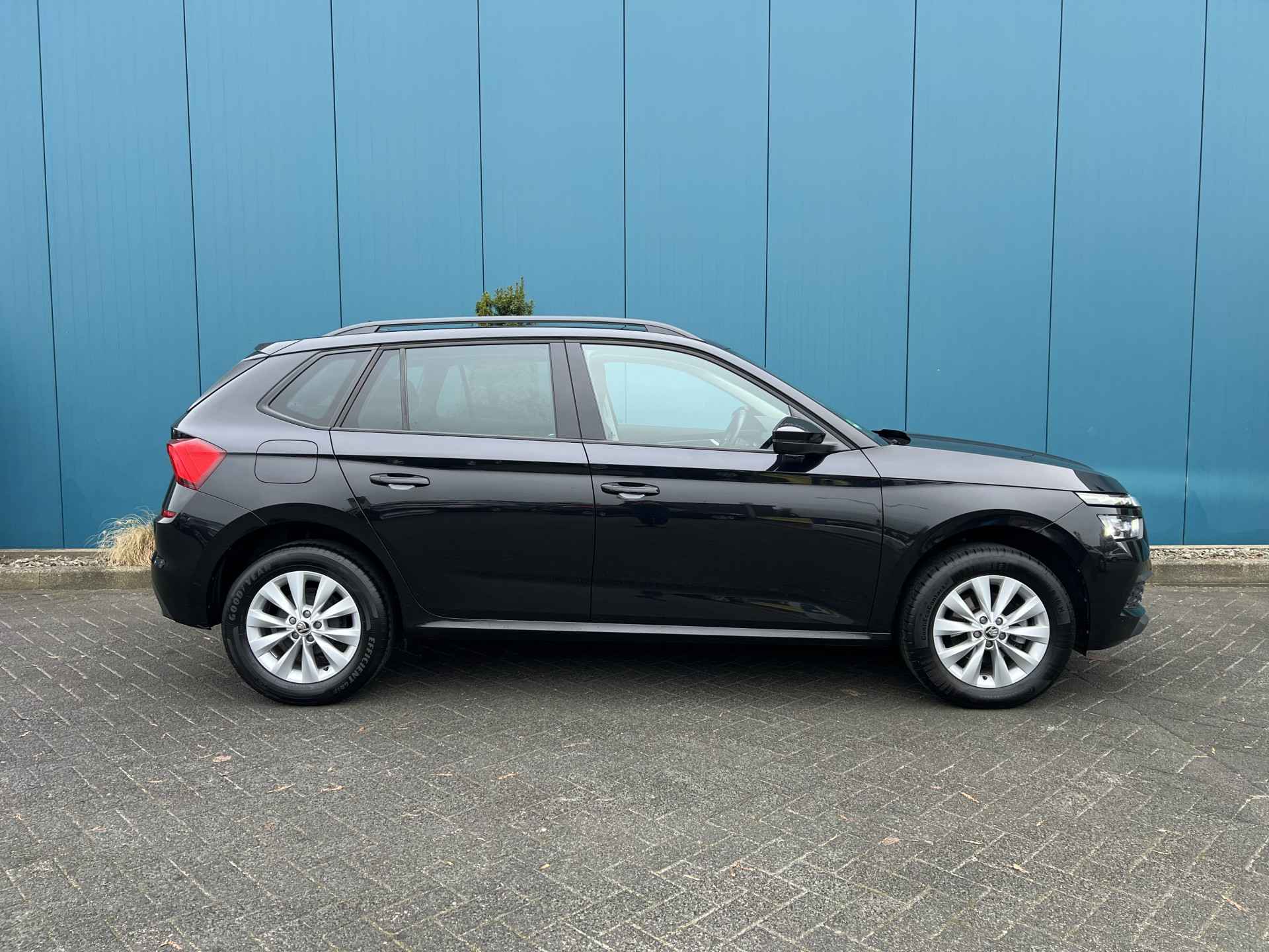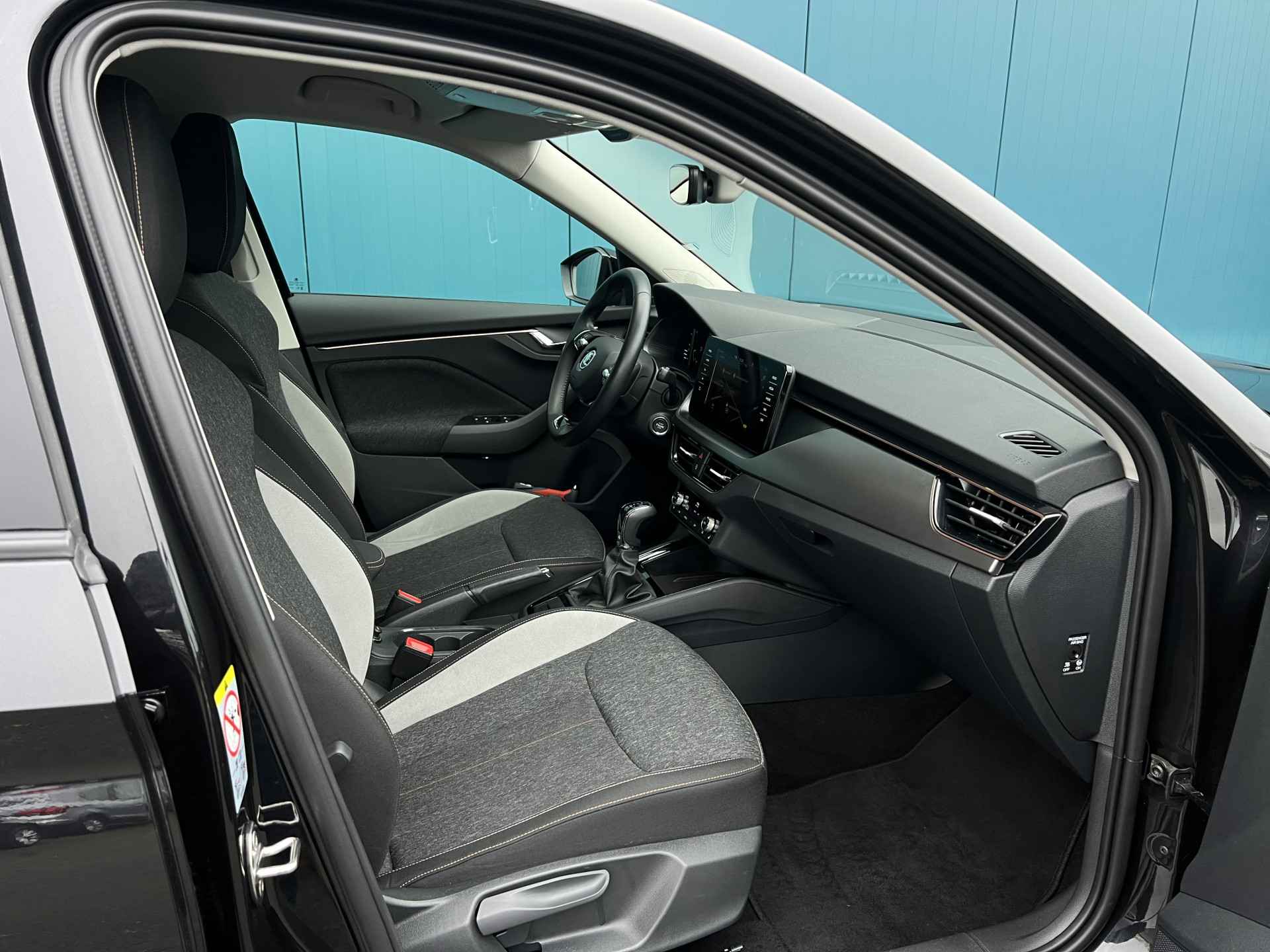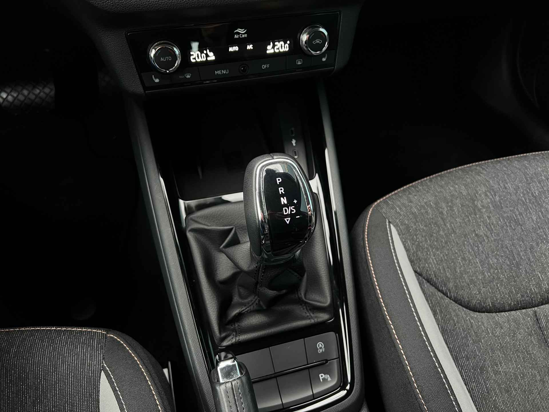 Deze Kamiq combineert een comfortabele hoge zit met moderne technologie, een soepele automatische transmissie en een rijk uitgeruste cabine.